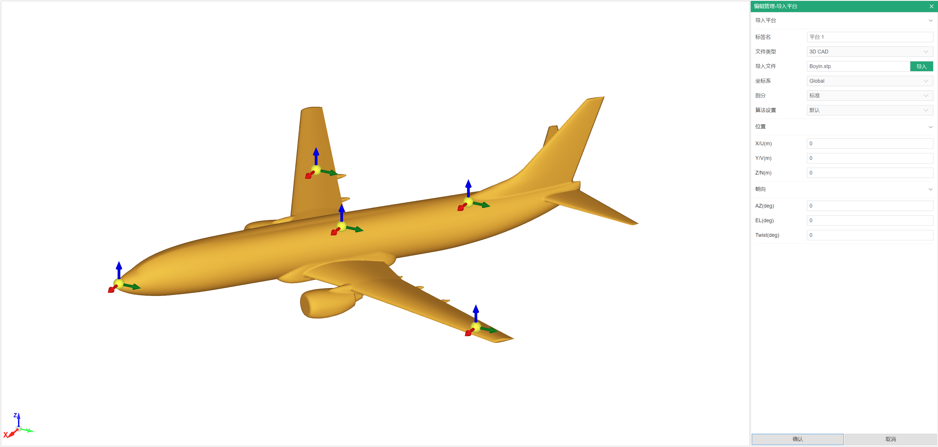 RDScene支持用户进行各类平台自由建立(如机载天线布局、车载天线布局、星载天线布局等),强大的通用性支持模型(CAD、网格)和天线(远场、S参数)的外部导入,提供丰富的天线库和自定义天线设置以满足用户需求,实时目标位置的排布实线各种使用环境的模拟。