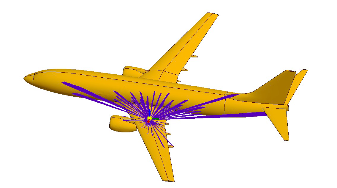 RDScene利用射线追踪技术求解天线在加载到大型平台上以后的辐射性能和耦合数据,并直观展示平台对天线性能的影响。RDScene运用高效的高频求解工具SBR+结合强大的后处理,提供丰富的输出结果,如抗干扰电平,射线路径(路径增益、路径损耗、时延扩展、接收功率等)以及近平台S参数和远场畸变,多天线耦合计算和大型系统EMC分析等。